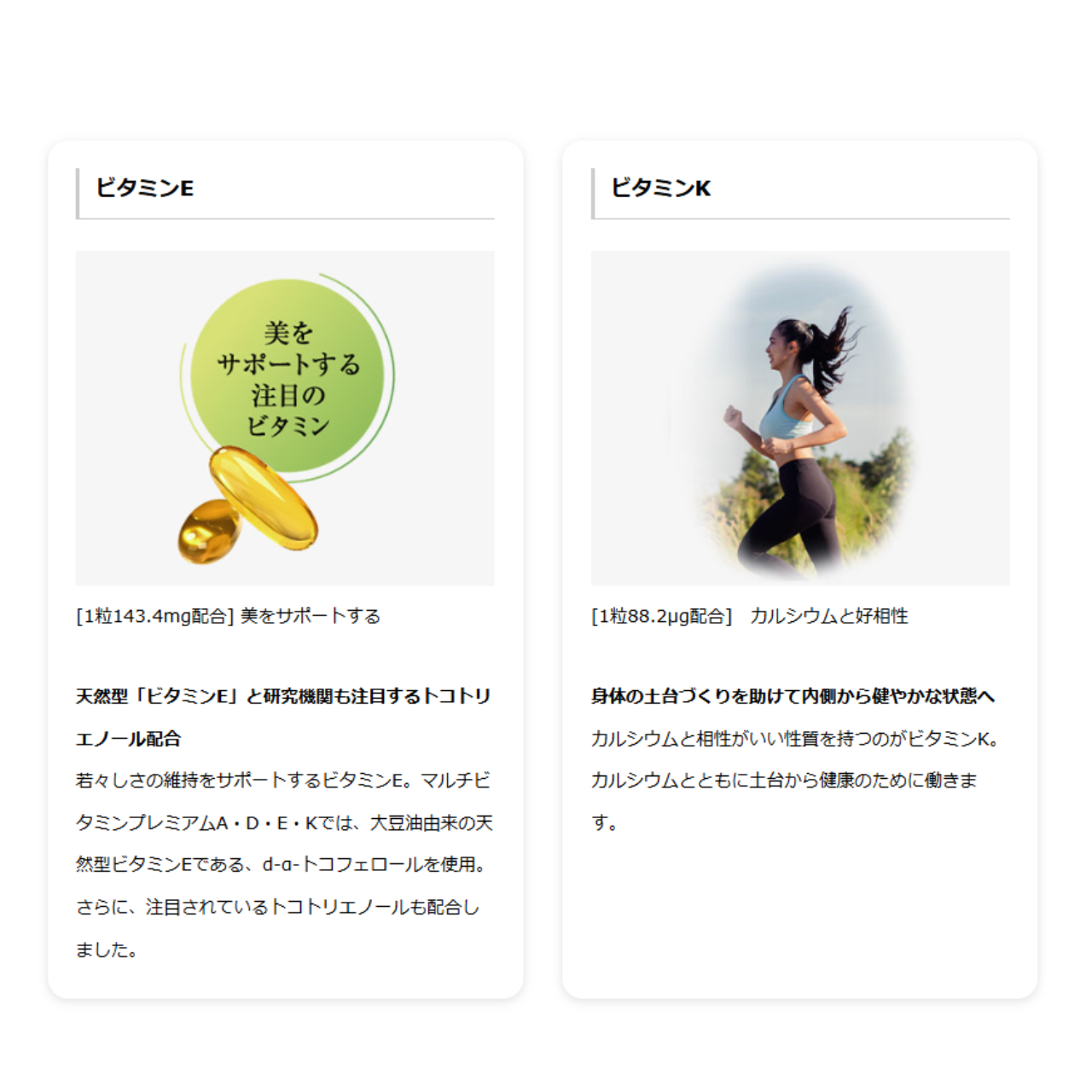 4種の脂溶性ビタミンをバランス配合。 美容と健康のWサポートサプリメント