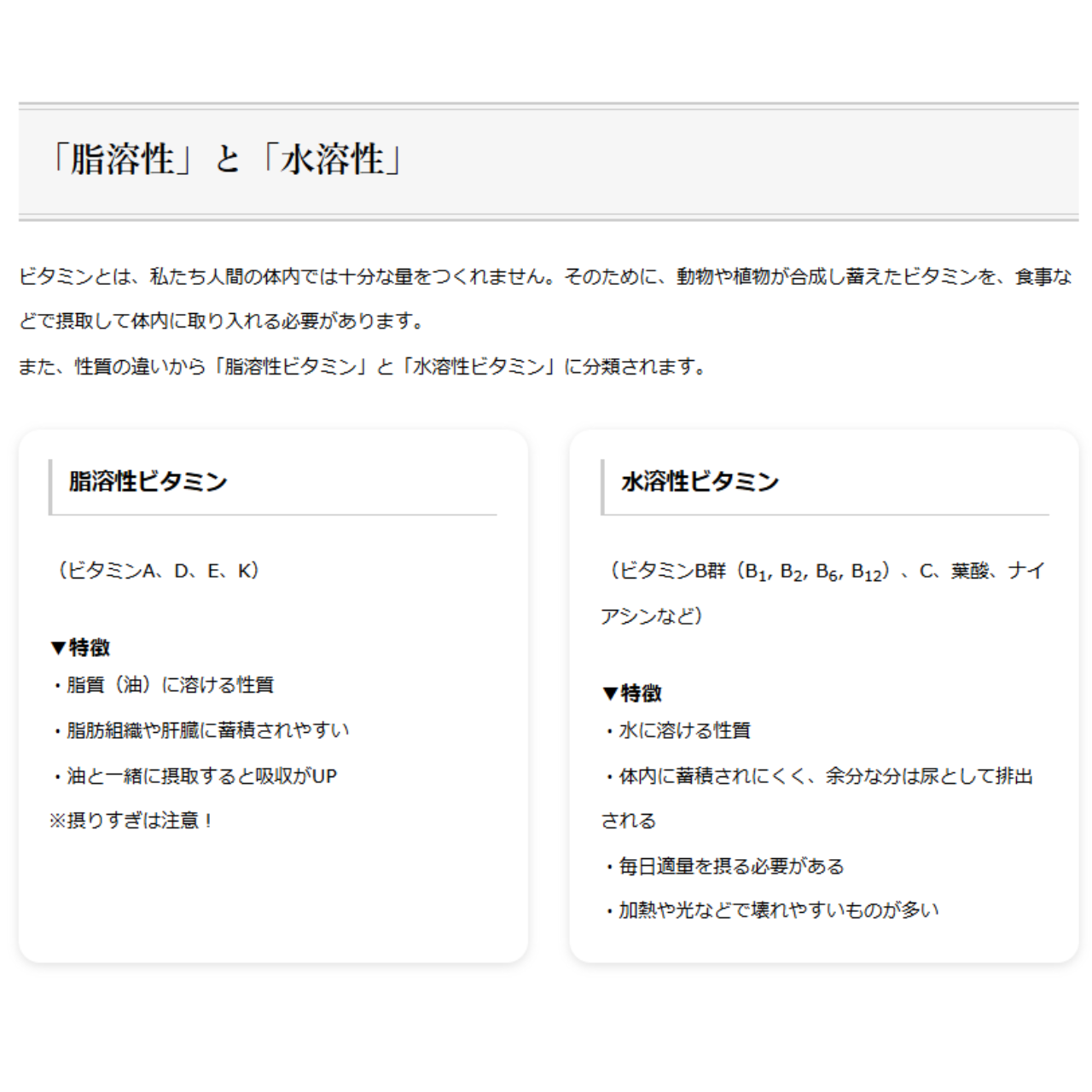 …太陽を浴びる事で生成される、カルシウムをサポートするビタミン。