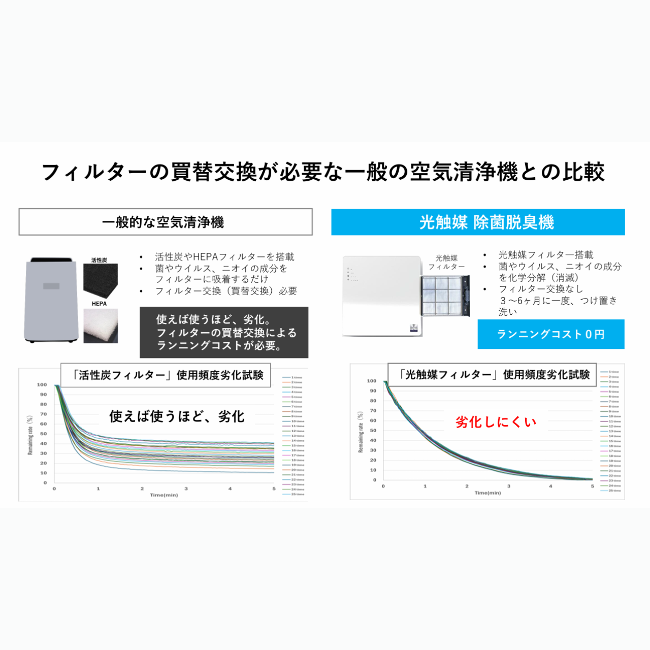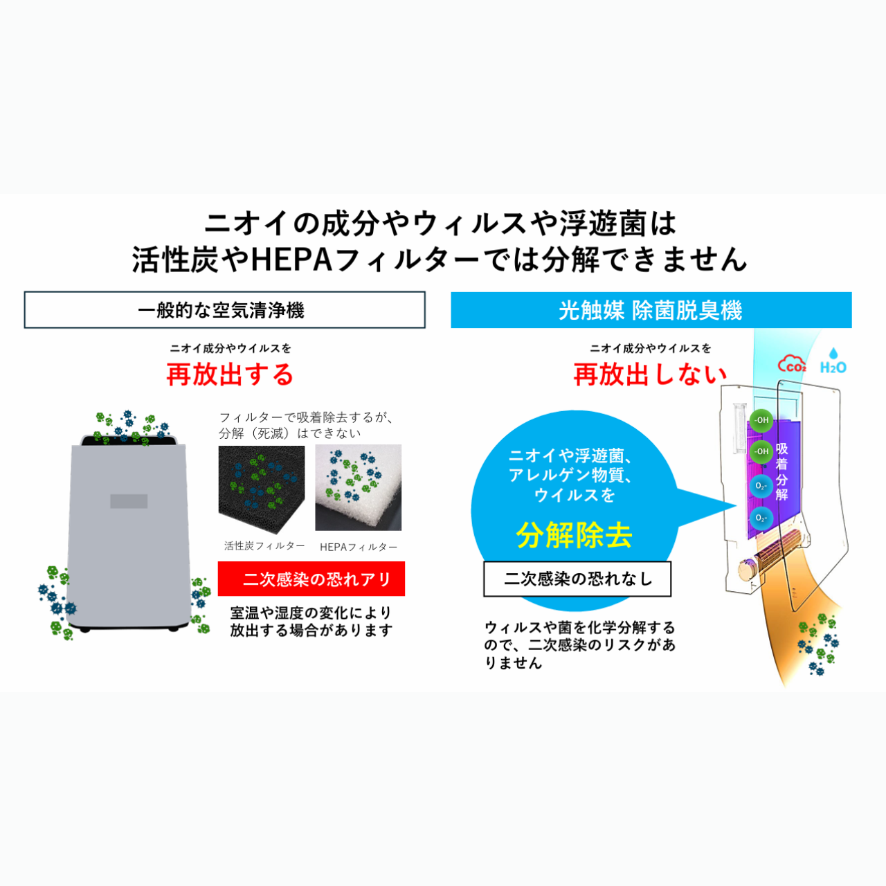 このルームエアーは、捕集して吸着させ「分解できる」ただ唯一の除菌脱臭機です。