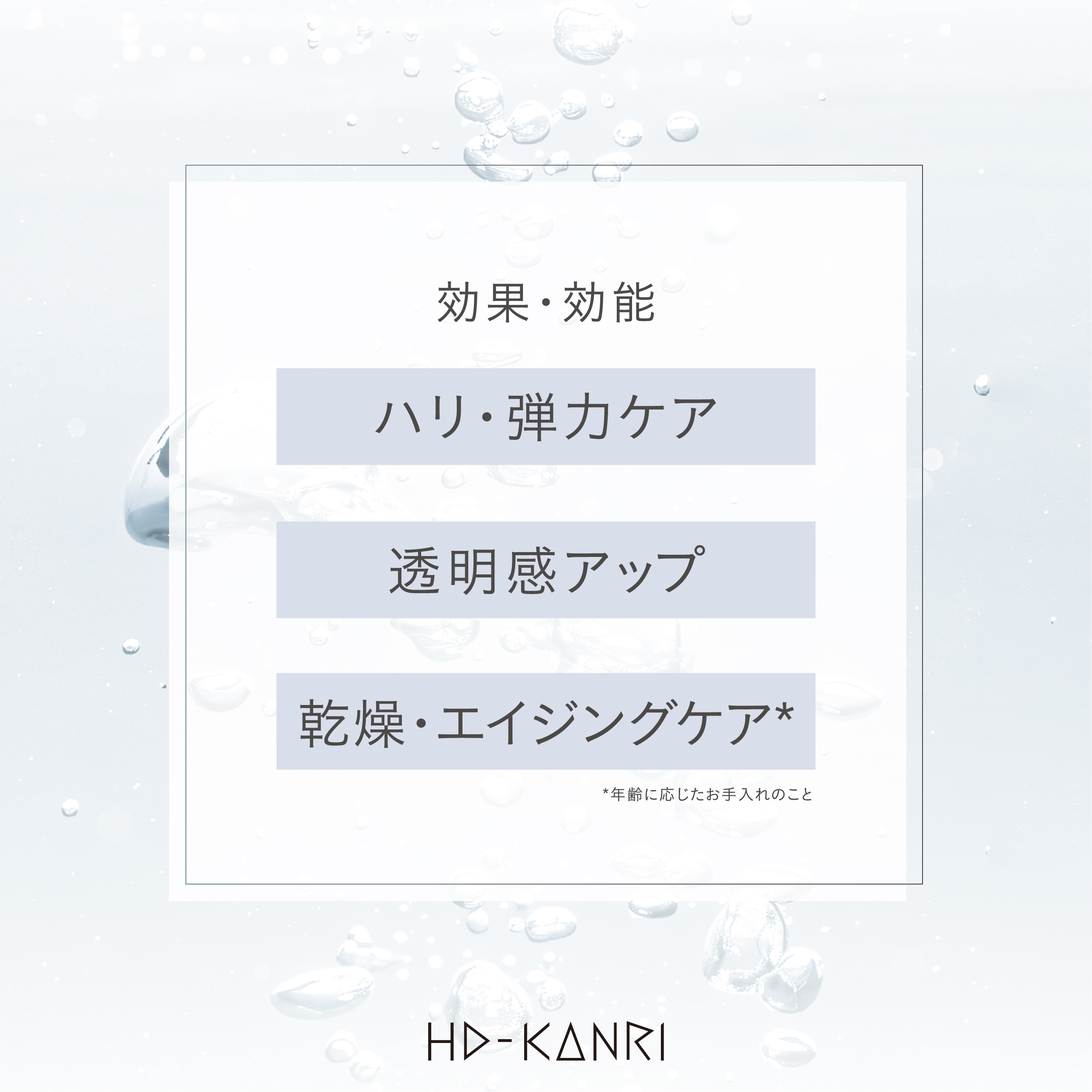 乾燥やエイジングサイン、にごり感にアプローチし、理想の透明感とツヤ感へ導くケアをサポート。水分を抱え込める肌や、濡れたように輝くみずみずしい肌印象を目指す方におすすめ。