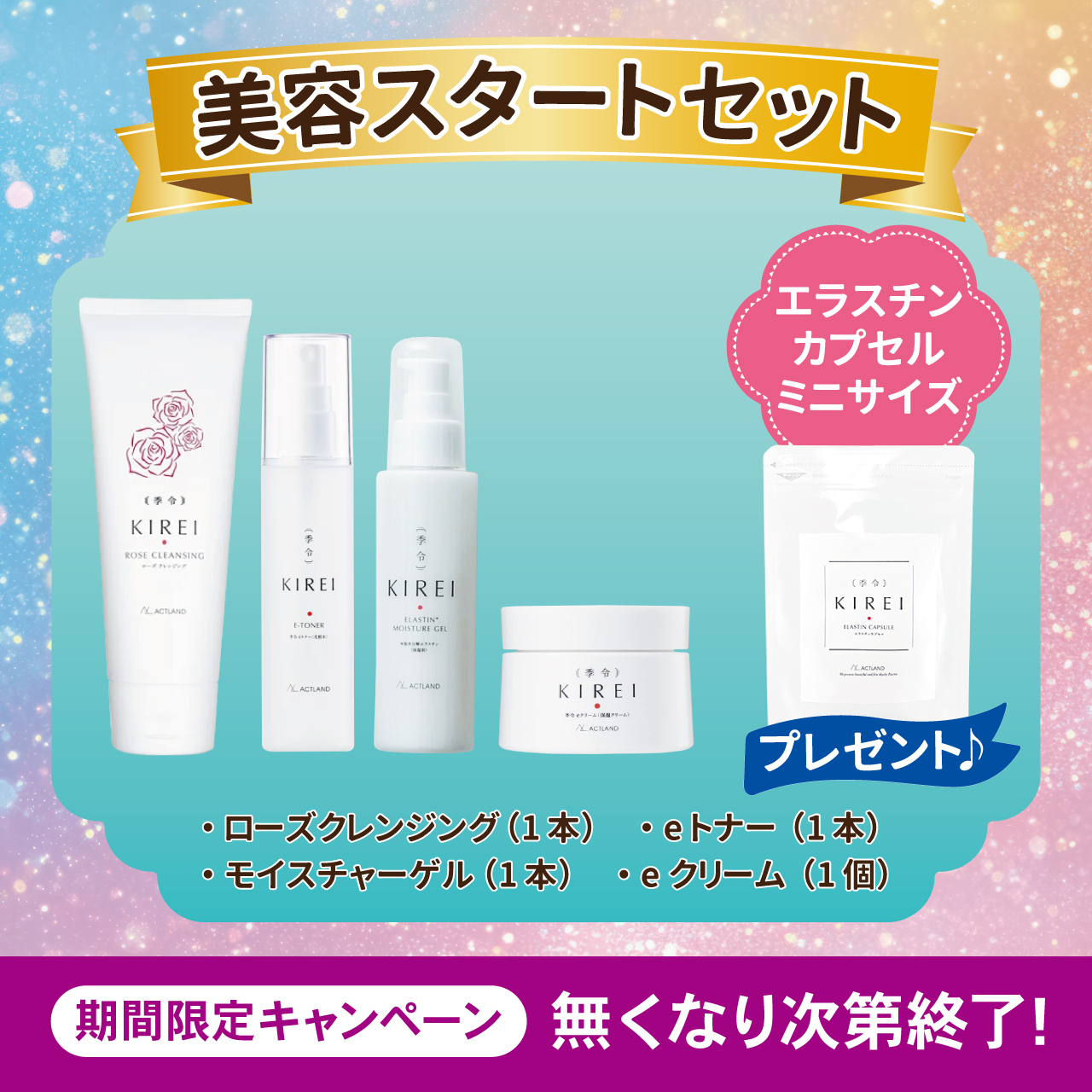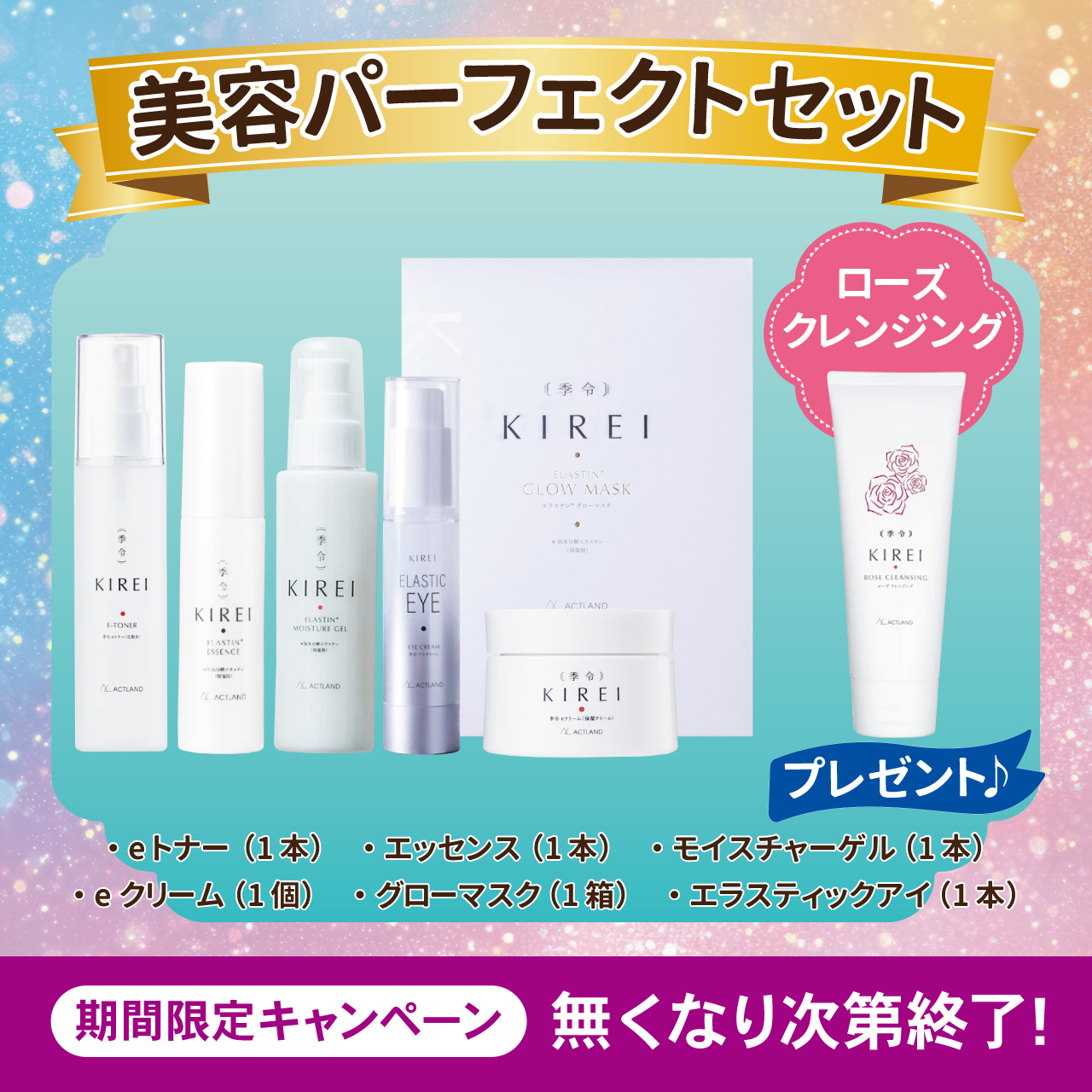 | サイズ | ●季令エラスチンカプセル:100粒 ●季令ローズクレンジング:150g ●季令eトナー:100ml ●季令eクリーム:40g ●季令エッセンス:30ml ●季令グローマスク:6枚 ●季令モイスチャーゲル:100ml ●季令エラスティックアイ:20g ●季令ルーセントUV:40ml ●季令ラディアントCC:30g |